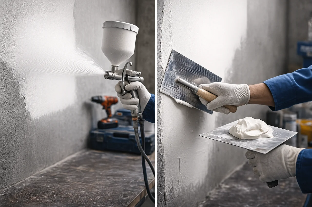 W metodzie tradycyjnej gładź nakłada się ręcznie — za pomocą pacy lub stalowej płyty. To sposób znany od lat, ale wymagający precyzji i czasu. Natomiast gładź natryskowa podawana jest za pomocą agregatu szpachlarskiego, który równomiernie rozprowadza materiał na dużych powierzchniach, skracając cały proces nawet o kilkadziesiąt procent.